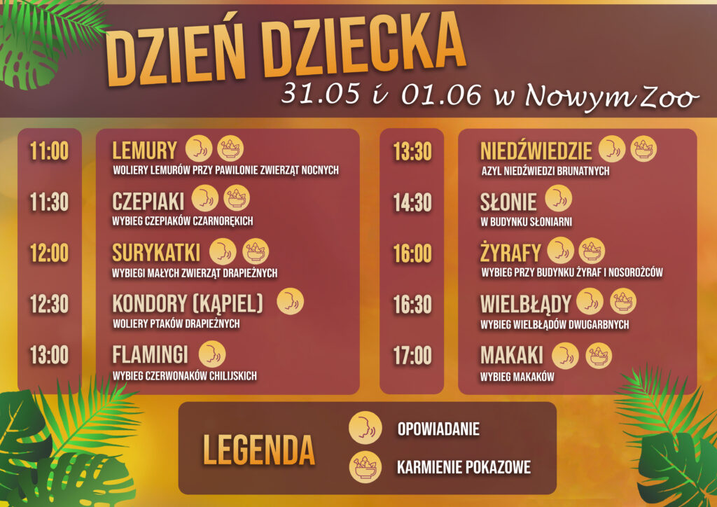 godz. 11.00 – opowieści o lemurach ( połączone z ich karmieniem) ;
