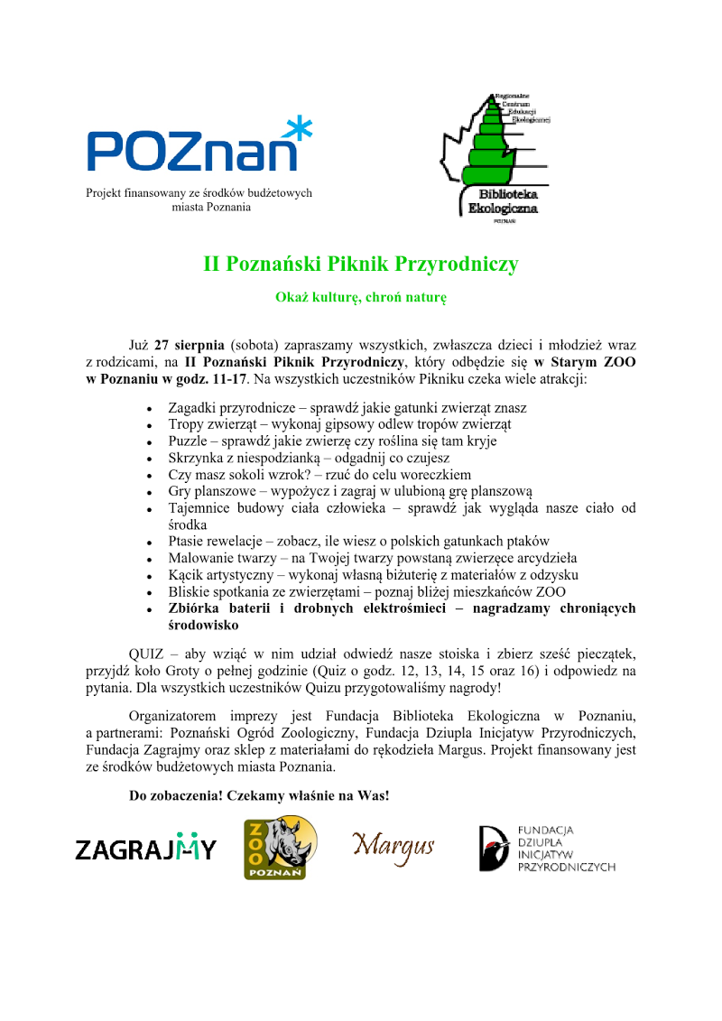 II Poznański Piknik Przyrodniczy w Starym ZOO