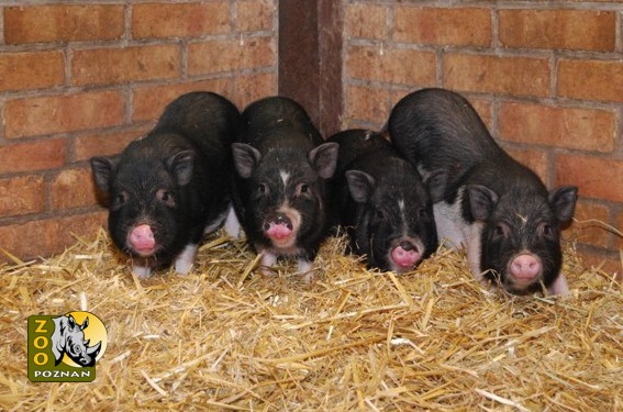 Miniaturowe świnki zwisłobrzuche lub po prostu mikroświnki to rasa świnek dorastających do 30-45 cm wysokości i wagi 20-50 kg. Może się to wydawać sporo, jak na określenie "mikro", ale jeśli porównamy z innymi rasami, mogącymi osiągać 350 kg, faktycznie te świnki są "mikro".Na razie świnki oswajają się z nowym otoczeniem i wychodzą na wybieg zewnętrzny tylko na krótko, dlatego prosimy o wyrozumiałość, jeśli akurat ich nie zastaniecie podczas wizyty w ZOO.