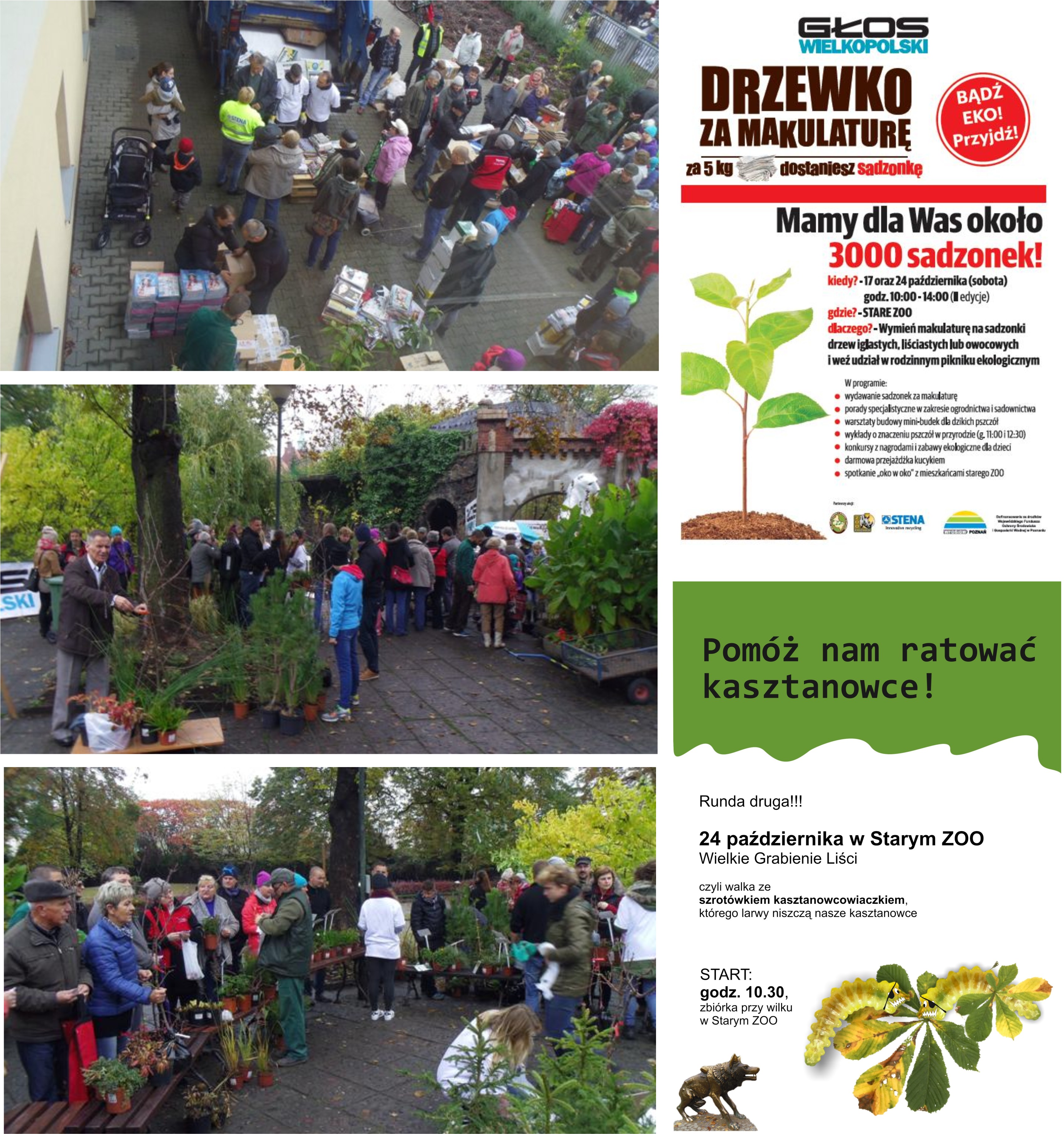Zapraszamy też do pomocy naszym kasztanowcom - wspólne grabienie liści startuje o godz. 10.30 (spotykamy się przy wilku, naprzeciw baru Kinga). Będzie okazja do poznania kilku szczegółów z życia największego wroga kasztanowców - szrotówka kasztanowcowiaczka - i do czynnej pomocy tym drzewom.