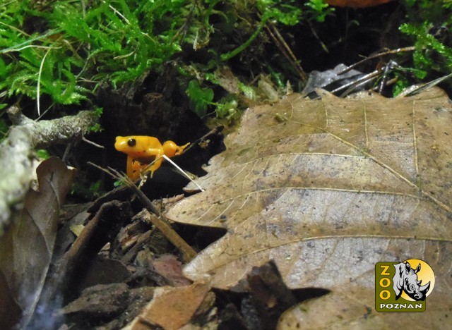 :W pawilonie zmiennocieplnych można od dziś zobaczyć mantelle złociste (Mantella aurantiaca). Te małe płazy przeprowadziły się do terrarium w pawilonie z zaplecza, gdzie od kilku lat mieszkały a nawet doczekały się potomstwa – było to pierwsze udane rozmnożenie mantelli w Polsce! Cieszy to tym bardziej, że mantelle są krytycznie zagrożone wyginięciem. W naturze występują na niewielkich izolowanych obszarach Madagaskaru.