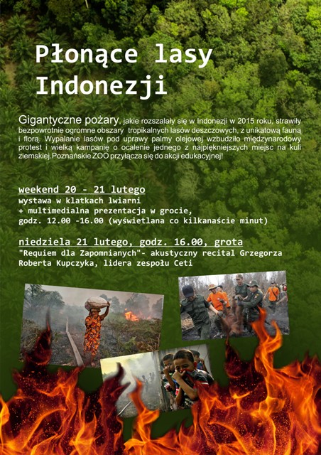 płonące lasy Indonezji, nieodwracalnie zniszczony dom ginących gatunków zwierząt. Wypalanie lasów pod uprawy palmy olejowej wzbudziło międzynarodowy protest i zainicjowało wielką kampanię o ocalenie jednego z najpiękniejszych miejsc na kuli ziemskiej. Poznańskie ZOO przyłącza się do akcji edukacyjnej.