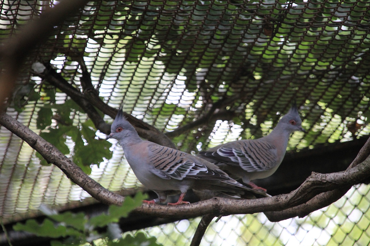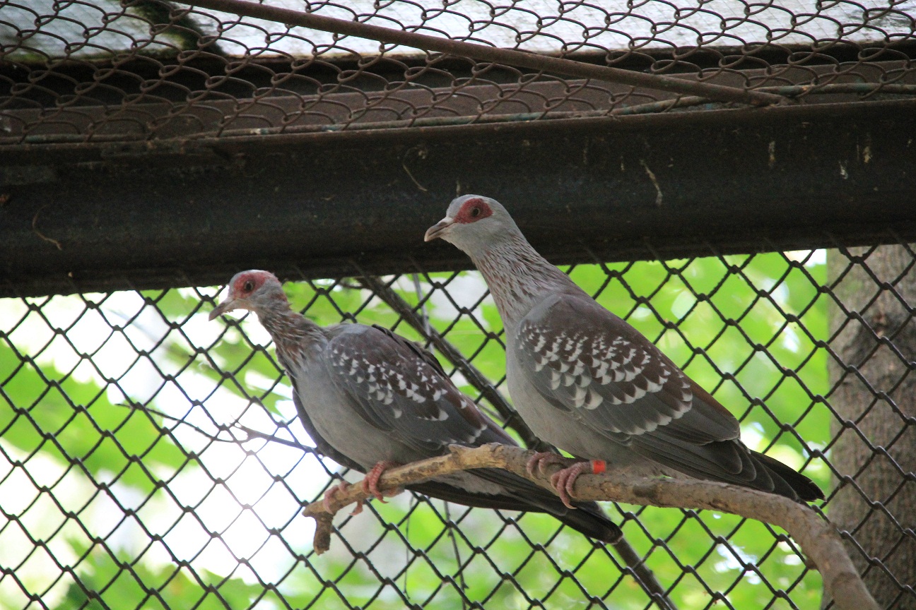 Bażantom i czubaczom w wolierach towarzyszą gołębie: