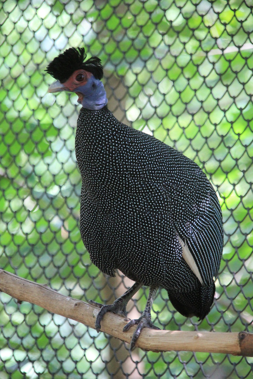 - swoją nazwę zawdzięcza kształtom kropek na piórach przypominającym perły.